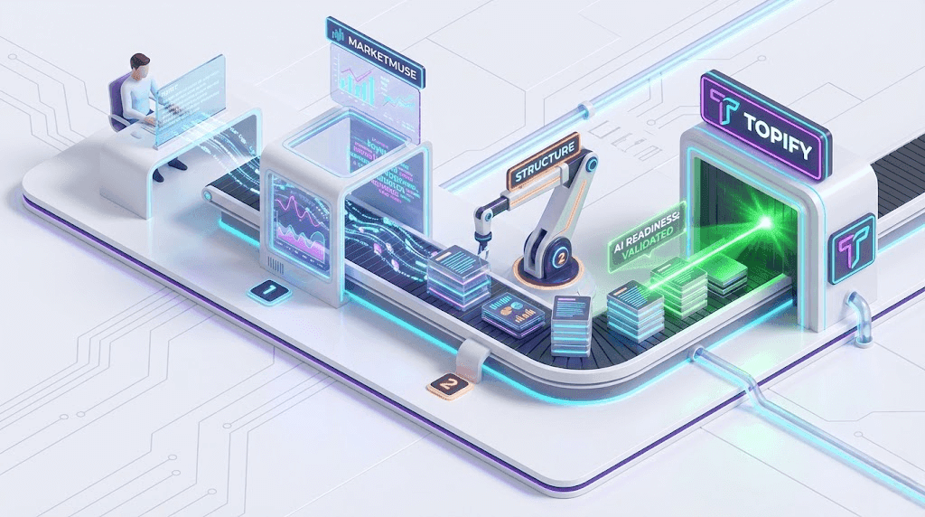 Topify is not a text editor; it is the Judge. It sits at the beginning and end of your production line, ensuring every piece of content has a strategic purpose.