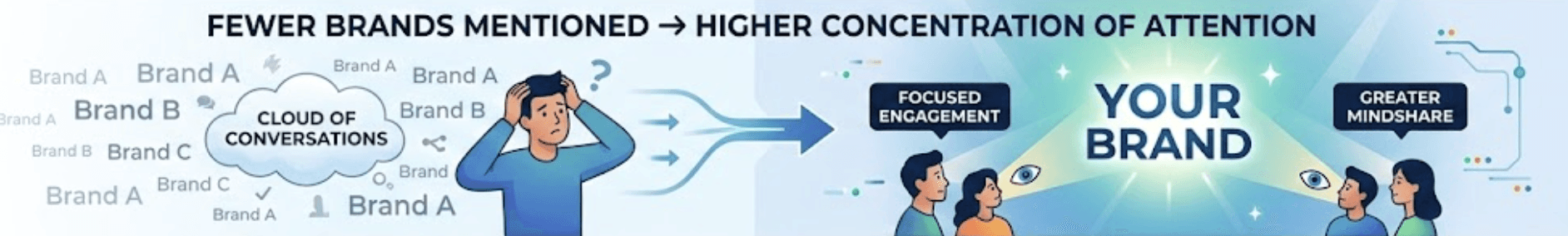 Fewer brands mentioned → higher concentration of attention