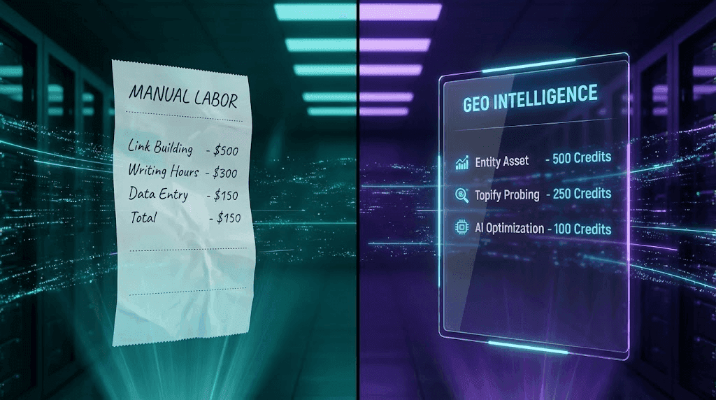The reality is that Generative Engine Optimization (GEO) has a fundamentally different cost structure than Traditional SEO. SEO is labor-intensive (people writing words). GEO is intelligence-intensive (structuring data and probing models).