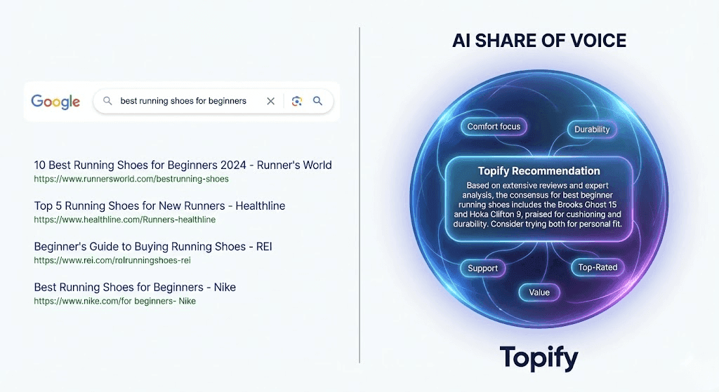 In the era of "Blue Links," tracking was binary: you were either at Position 1 or you weren't. In the AI era, tracking is probabilistic. An "AI Rank" is actually a Recommendation Probability Score. If a tracking tool like Topify identifies that your brand is mentioned in 85% of simulated interactions, that 85% is your functional "ranking." This shift is a core component of the transition from SEO to GEO, where brands must optimize for the likelihood of being included in the model's synthesized output.