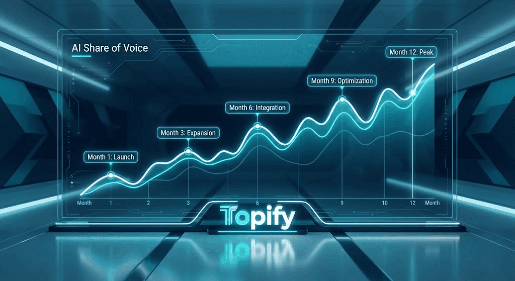 Use Topify to look back at the last 90 days. Identify your "Natural SOV"—your average visibility stripping away outliers. This is your KPI benchmark.