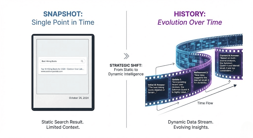 Volatility Management: Historical tracking is the only way to distinguish between a temporary "model flicker" and a permanent loss of citation authority.