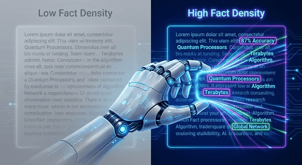 LLMs are "prediction machines" that favor high-entropy content. Content filled with fluff ("We are a leading provider of solutions...") is ignored. Content filled with entities and facts ("Topify processes 5 million prompts daily...") is cited. AI search optimization tools help you audit your content to increase this "Fact Density."